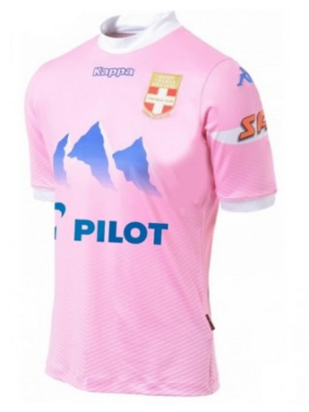 O rosa, cor tradicional do clube, não poderia ficar de fora. Não traz grandes detalhes. Como já mencionado, uma montanha estampa a área frontal na cor azul. O branco preenche as bordas das mangas e gola.