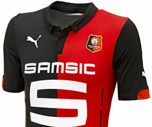 A camisa do Rennais é metade vermelha, metade preta dividida verticalmente. As mangas não seguem essa mudança e são idênticas em ambos os lados. Os shorts são totalmente negros porém com uma fina listra vermelha em cada lateral.