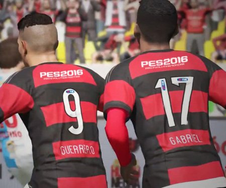 Quem assistir o jogo do @Flamengo no domingo vai ver um patrocínio especial no manto rubro-negro ;) #PES2016 pic.twitter.com/TeHuvj5dpL