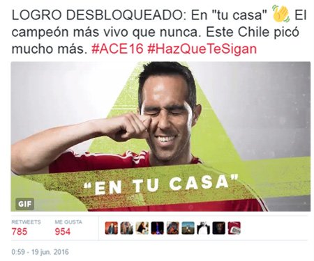 Após tirar sarro com o Brasil em sua conta peruana no Twitter, no domingo passado, a Adidas, agora em sua conta chilena, fez um post na mesma rede social utilizando a imagem do goleiro chileno Claudio Bravo, zombando da seleção mexicana, eliminada da Copa America Centenário com um 7-0 pelo Chile.