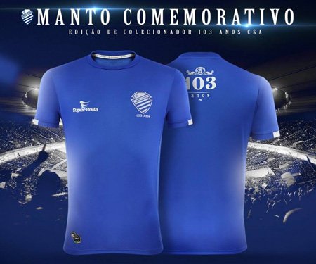 A camisa dos 103 anos do CSA traz um desenho bem simples com gola redonda, sendo o manto totalmente azul com aplicações em branco. Abaixo do escudo é visto a inscrição 103 anos, lembrança que é colocada de forma maior no verso. Nas bordas das mangas são vistos pequenos detalhes em branco.