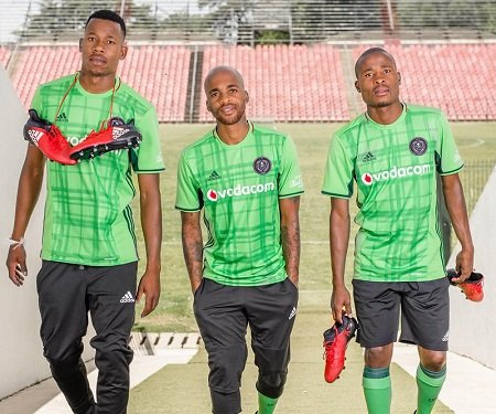 A Adidas estampa uma versão verde escura de sua logomarca no lado direito do peito, enquanto o escudo do Orlando Pirates é colocado no lado esquerdo, em sua versão tradicional.