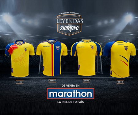Relembrando 1994, 1998, 2002 e 2006, as camisas especiais lembram cada uma um feito da seleção equatoriana ao longo do tempo que a equipe é patrocinada pela Marathon.