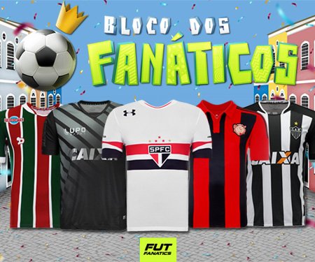 O Carnaval está chegando e a Fut Fanatics te convida a entrar no Bloco dos Fanáticos, onde você encontra ofertas de camisas de futebol e produtos esportivos com até 70% de desconto.