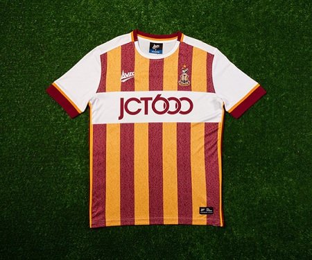 A Avec Sport estampa uma versão branca de sua logomarca no lado direito do peito, enquanto o escudo do Bradford City é colocado no lado esquerdo, em sua versão tradicional.