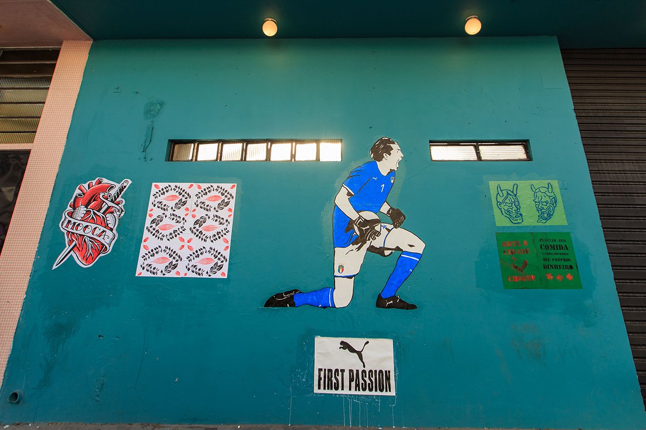 Assim como nos outros locais, a arte é assinada pelos artistas do Kamp Seedorf, coletivo que estampa em muros de todo o mundo os jogadores que são ícones do futebol.