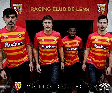 Por fim, a camisa do RC Lens é vermelha e traz linhas amarelas horizontais. O kit é inspirado no título francês de 1997-1998, o único da equipe que atualmente disputa a Ligue 2.