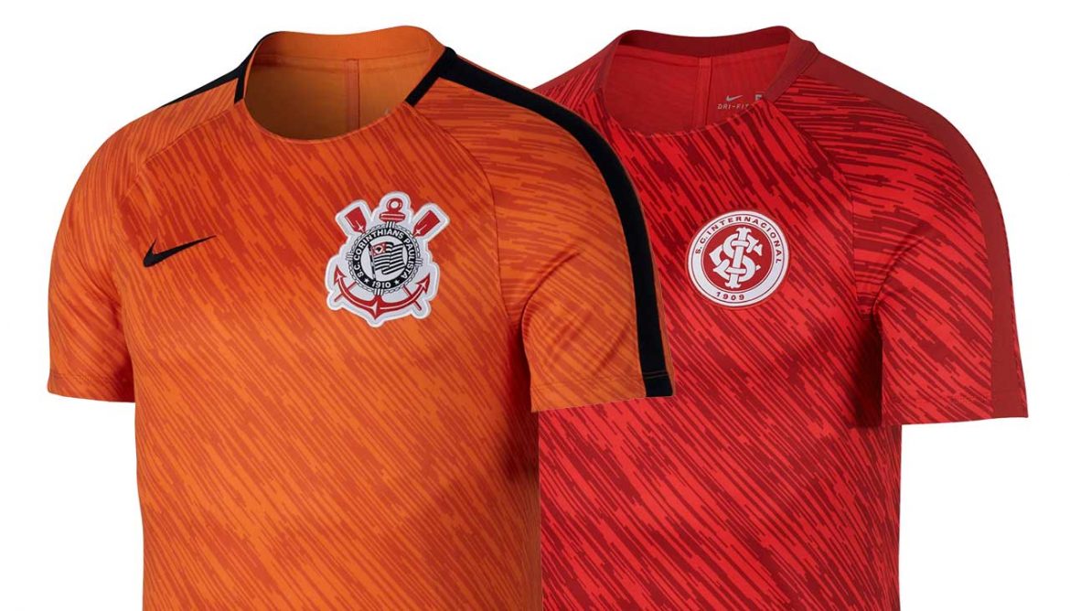 Há alguns dias, a Nike já comercializa em sua loja virtual, as novas camisas de treino do Corinthians e do Internacional para 2018, que inclusive já estão sendo utilizadas pelos jogadores dos clubes no dia a dia e antes dos jogos.
