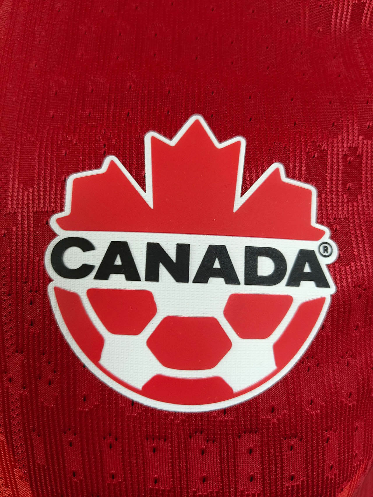 A Nike estampa o Swoosh em branco, no lado direito do peito, enquanto o escudo da Seleção Canadense é colocado no lado esquerdo, em sua versão atual padrão.