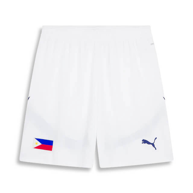 O manto titular da seleção traz o template antigo da marca alemã como base, com o azul royal como predominante, punhos brancos, mesma cor do arco nas costas e laterais e lombar em azul marinho, assim como a nuca. Na região frontal, vão cinco listras horizontais quadriculadas, sendo três em azul marinho, uma vermelha e uma branca, o que é inspirado na bandeira do país e também no nascer do Sol filipino. Na nuca, vai a estrela presente na bandeira.
