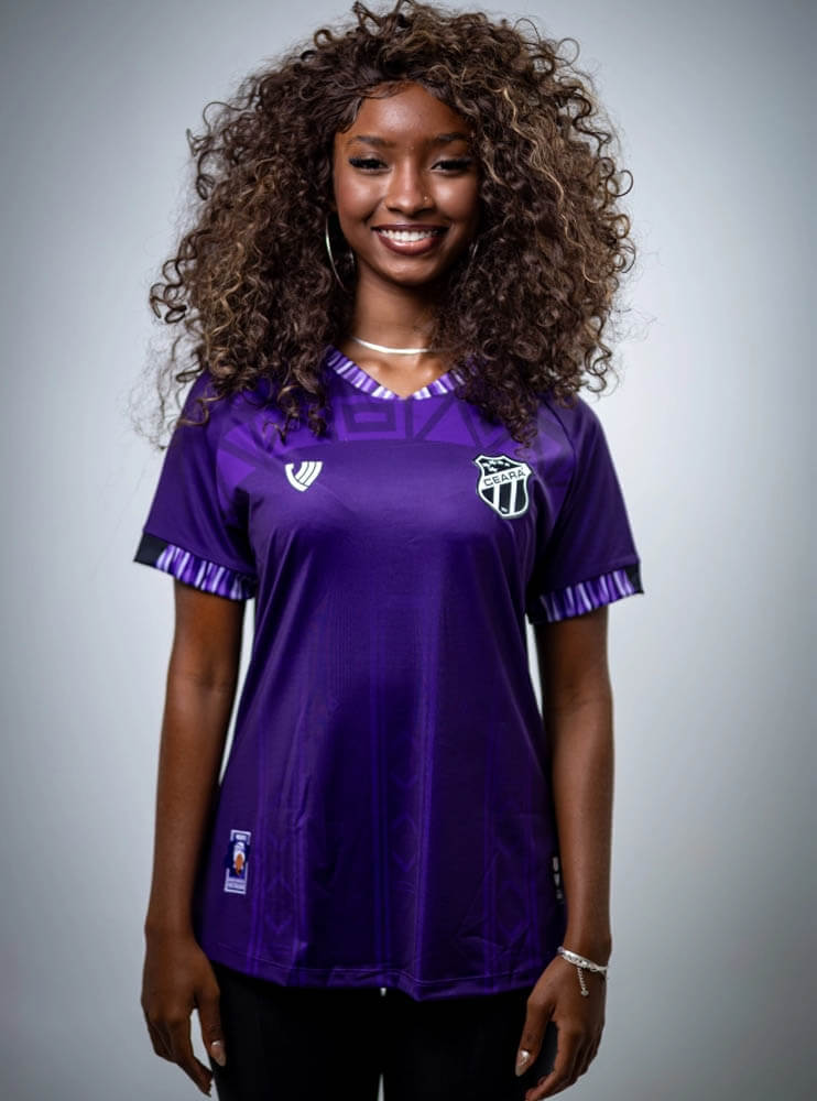 Predominantemente roxa, a camisa resgata a cor utilizada pelo Rio Branco, equipe que deu origem ao Ceará Sporting Club, criando uma ponte direta com as raízes do time. A tonalidade também dialoga com a simbologia presente em diferentes culturas africanas.