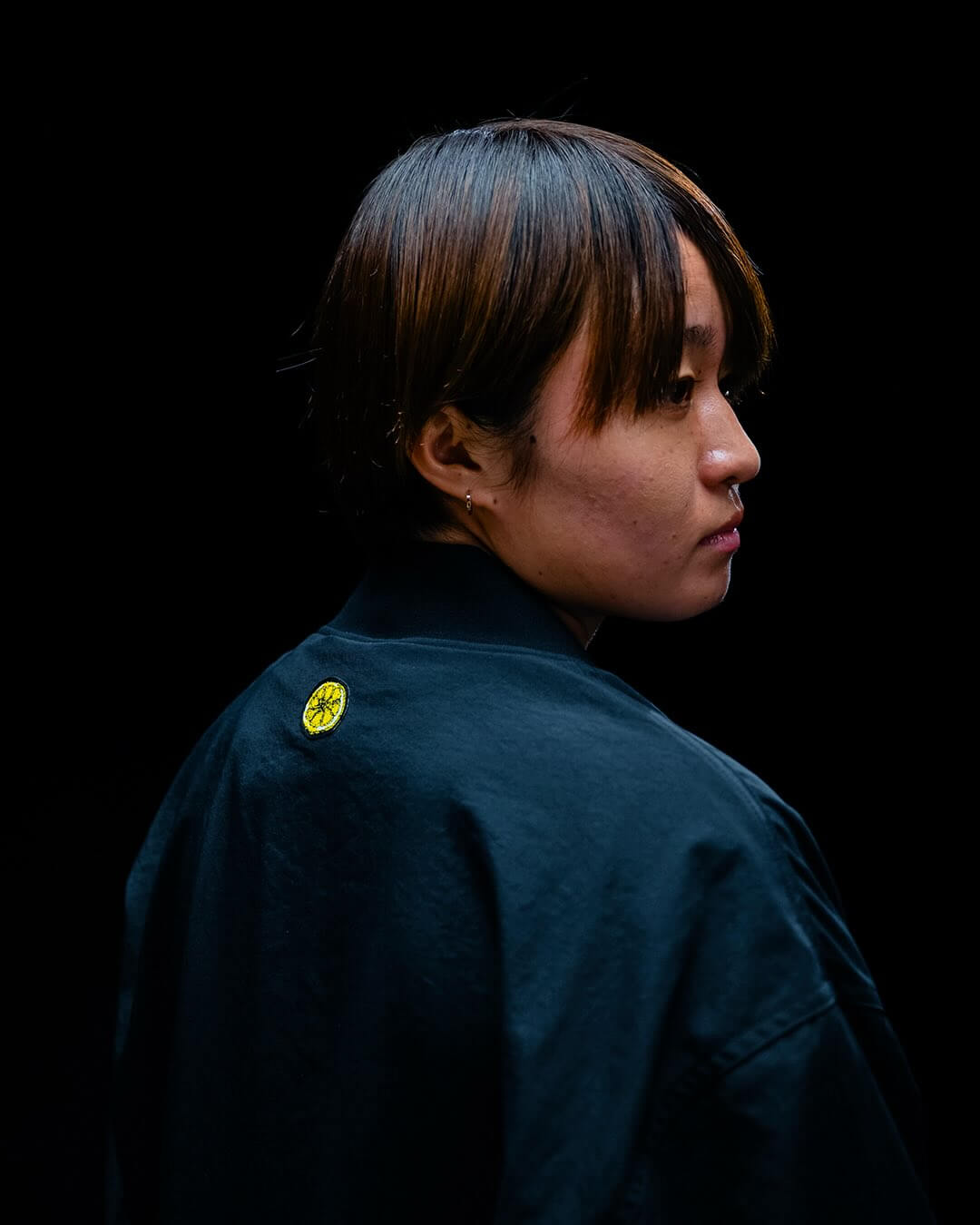 Outro item que chama atenção é a jaqueta preta, que incorpora elementos gráficos do single na parte superior do peito. O visual é sóbrio e elegante, com detalhes em amarelo que dialogam com a identidade dos Stone Roses, criando uma peça versátil que transita entre o streetwear e a estética das arquibancadas. As mangas contam com as três listras em branco, e o fechamento frontal é feito por zíper preto, mantendo um visual equilibrado entre o esportivo e o casual.