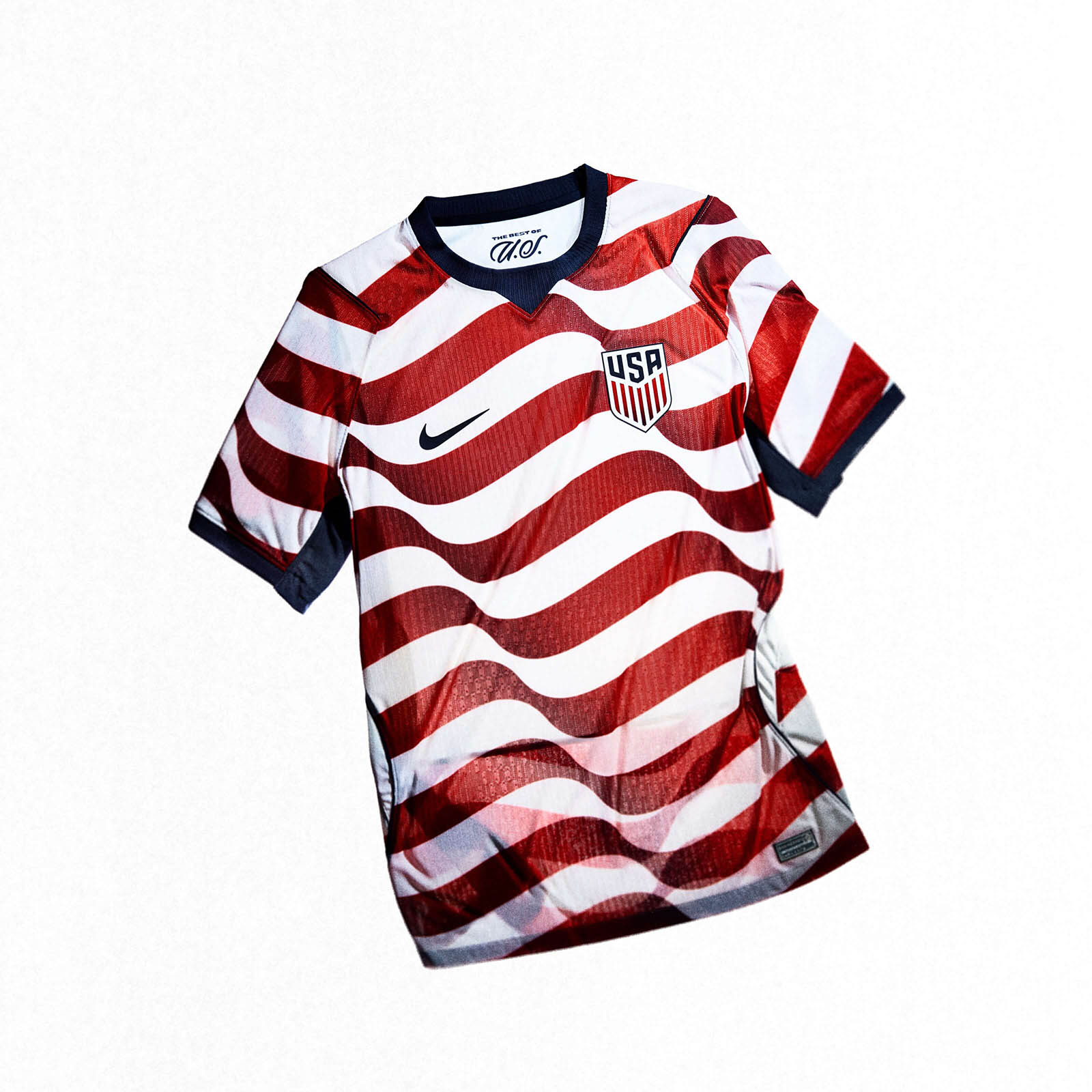 Dentro da gola, a frase “The Best of U.S.” reflete a união e autoconfiança do time em subir um novo degrau no patamar do futebol mundial.