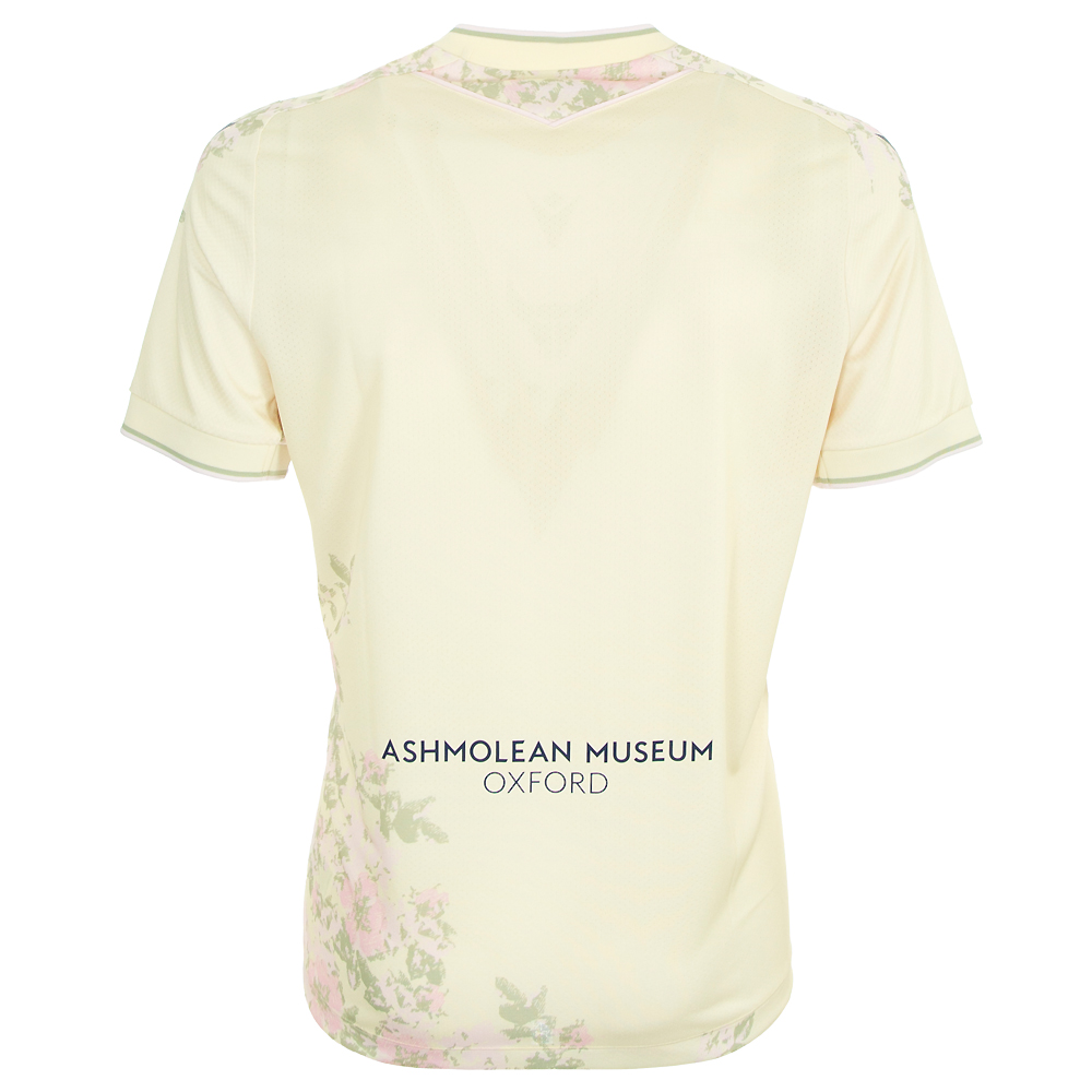 A camisa “In Bloom” do Oxford United vem em um tom suave de amarelo, com gola redonda e punhos de malha com detalhes em rosa e verde. O design é caracterizado por uma releitura de “Estudo de Rosa Selvagem”, obra do pensador e artista vitoriano John Ruskin, figura histórica intimamente ligada à cidade de Oxford.