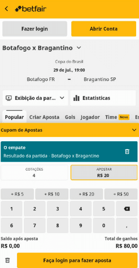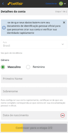 Criar sua conta na Betfair é simples, um processo 100% online e totalmente adaptado ao público brasileiro, inclusive com suporte em português e depósitos via Pix.