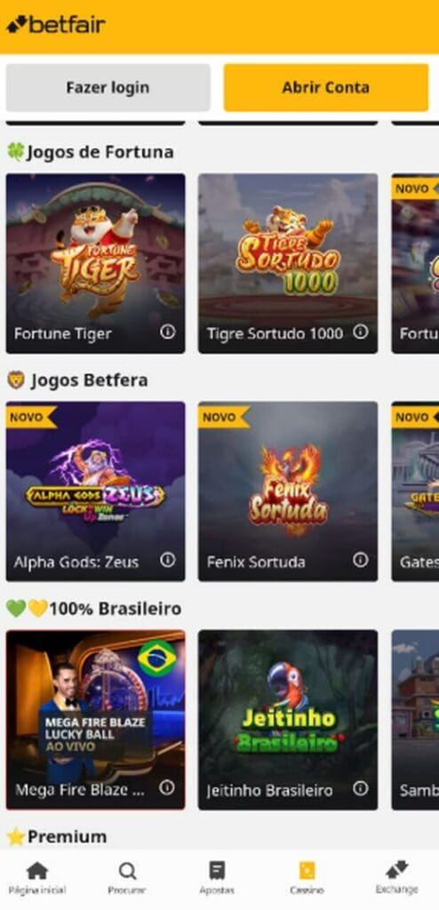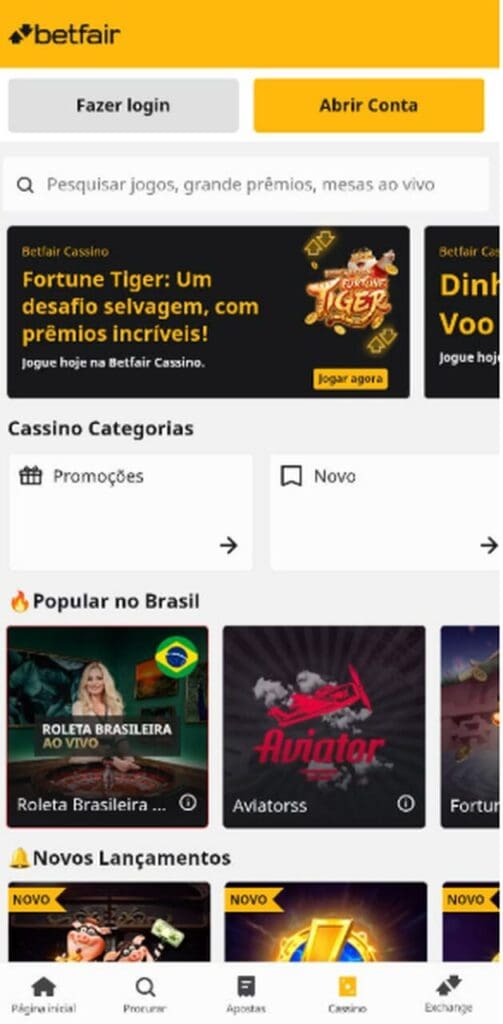 Se você busca um cassino novo para as suas apostas, a Betfair oferece uma seção bem diversificada, com torneios e jackpots interessantes.