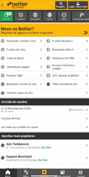 - Acesse o site oficial da Betfair ou abra o app Android.