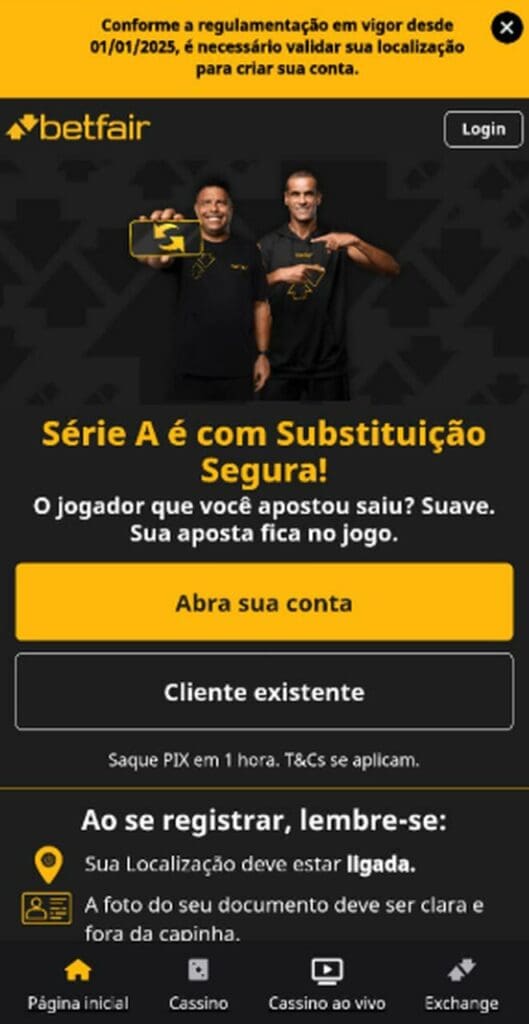 Tanto na Betfair Brasil quanto em qualquer outra casa de apostas, a geolocalização é um requisito obrigatório para apostar nas plataformas desde a regulamentação do mercado de apostas no Brasil.
