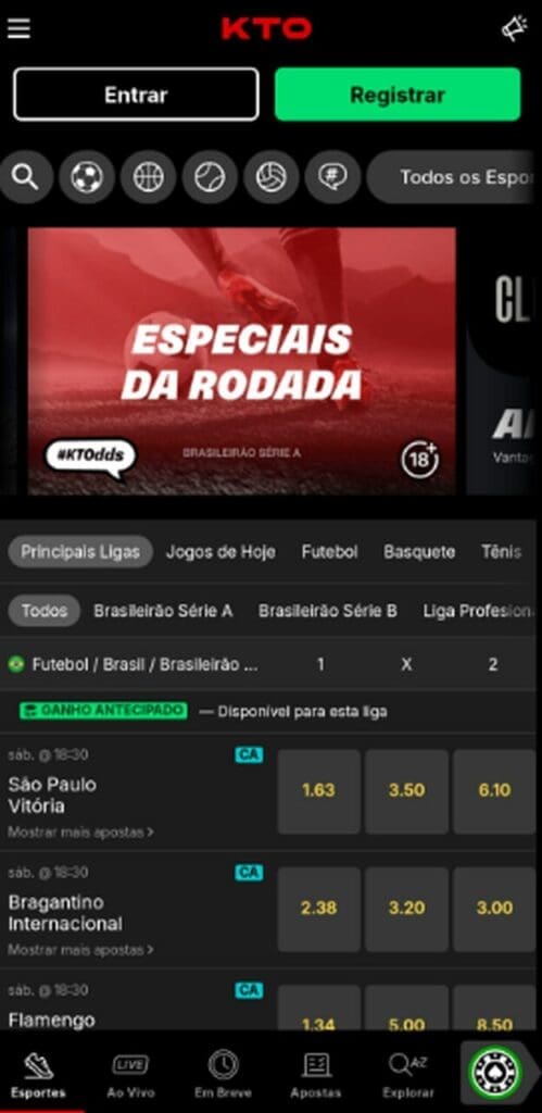 Além disso, o site da KTO é totalmente otimizado para dispositivos móveis, proporcionando uma experiência de apostas semelhante à do aplicativo diretamente pelo navegador do celular.